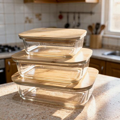طقم أواني زجاجية مع أغطية محكمة – جودة عالية